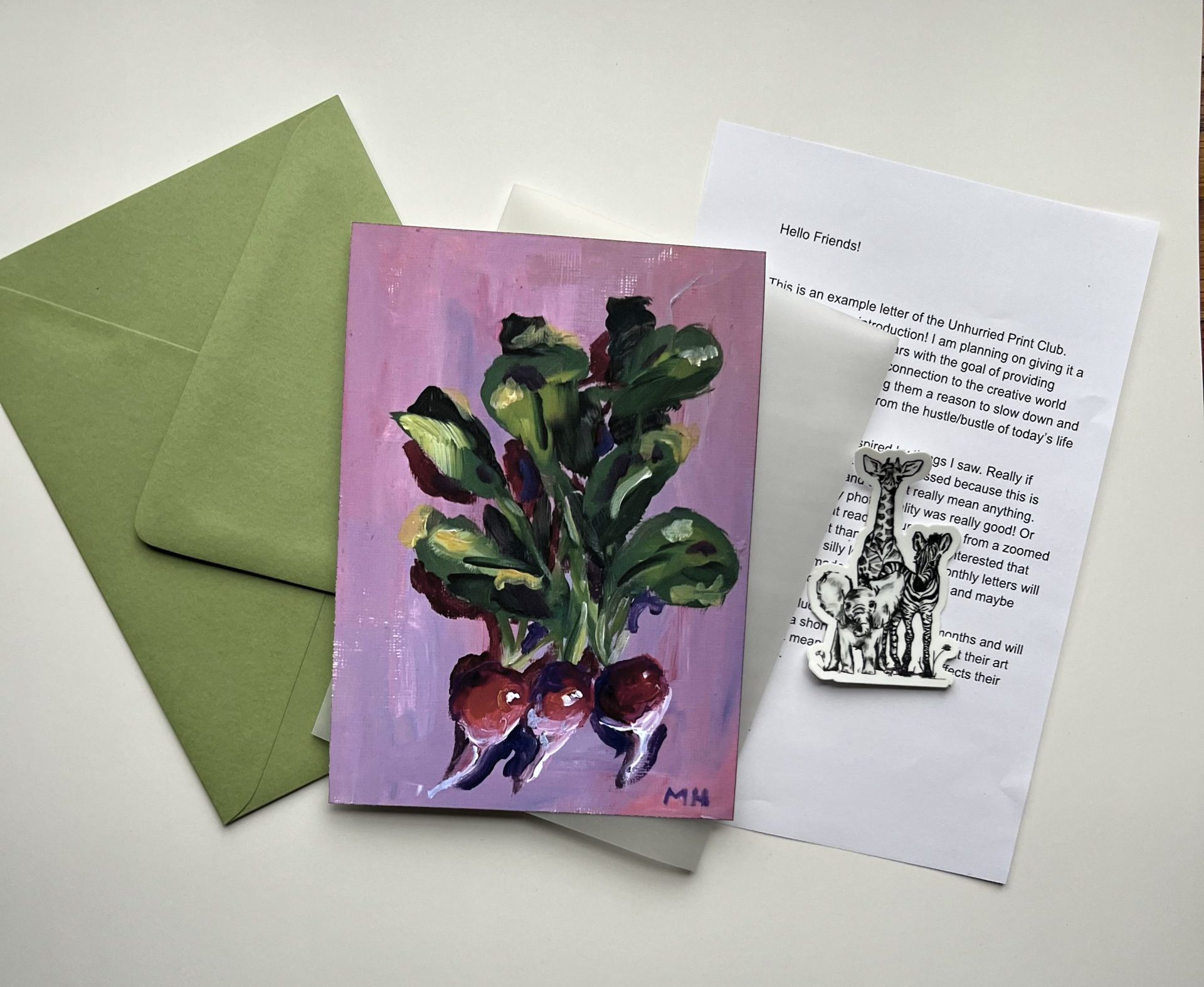 So you’re interested in joining Unhurried Print Club! So happy to hear that 🙂 I am so excited to be creating this monthly snail-mail print club and bringing art right to your mailbox.